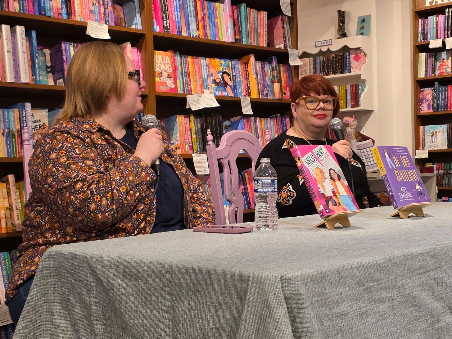 I had a truly wonderful time on book tour last week. I loved meeting some of you, seeing friends, seeing family, seeing some of my very favorite bookstores, old and new. I am blown away by the love people have for the Out in Hollywood series, by how many readers had somehow already finished reading In Her Spotlight, and how much queer joy and community we’re all finding with each other even in the midst of pretty dark times.